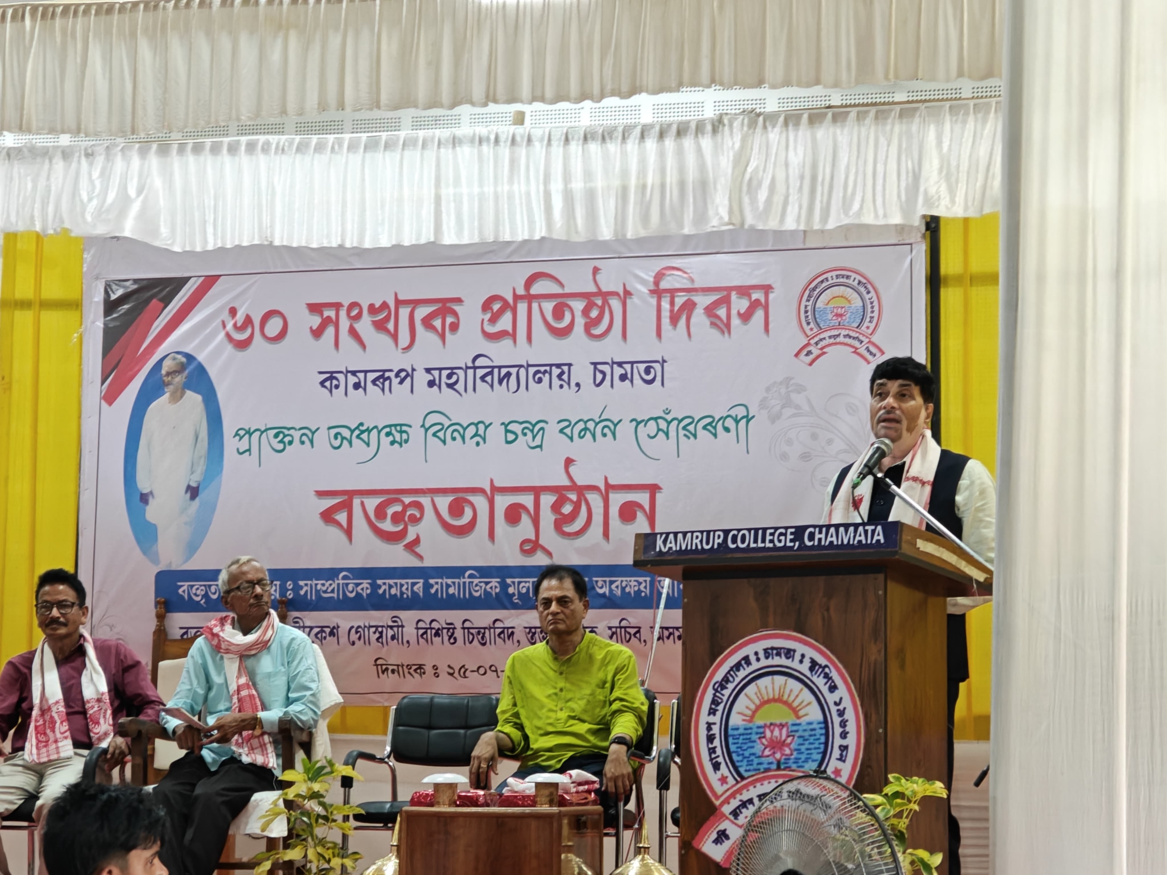 Hrishikesh Goswami,Secretary,Assam Sidhu Sahitya Nyaas delivered the Binoy Ch.Barman memorial lecture on the occasion of 60th Foundation Day of Kamrup College,Chamata on 25/07/2025