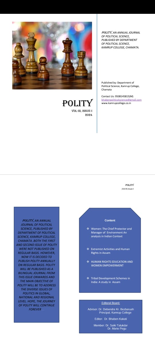 | 4 | Polity, Vol-III | Dr. Bhaben Kakati (Editor) | "Polity" an Annual Journal Published By Department of Political Science | | 2024 |  |